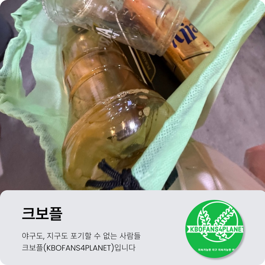 야구장에서 음료를 마시려면 플라스틱 병에 담긴 제품을 구매할 수밖에 없는데요. 야구장에서 플라스틱 없이도 물을 마실 수 있으면 좋지 않을까요? 같은 고민을 크보플 빠띠즌이 하고 있습니다. 더 나은 야구 문화를 위한 크보플의 연구가 성공적으로 이뤄질 수 있도록 캠페인에 참여해 주세요!