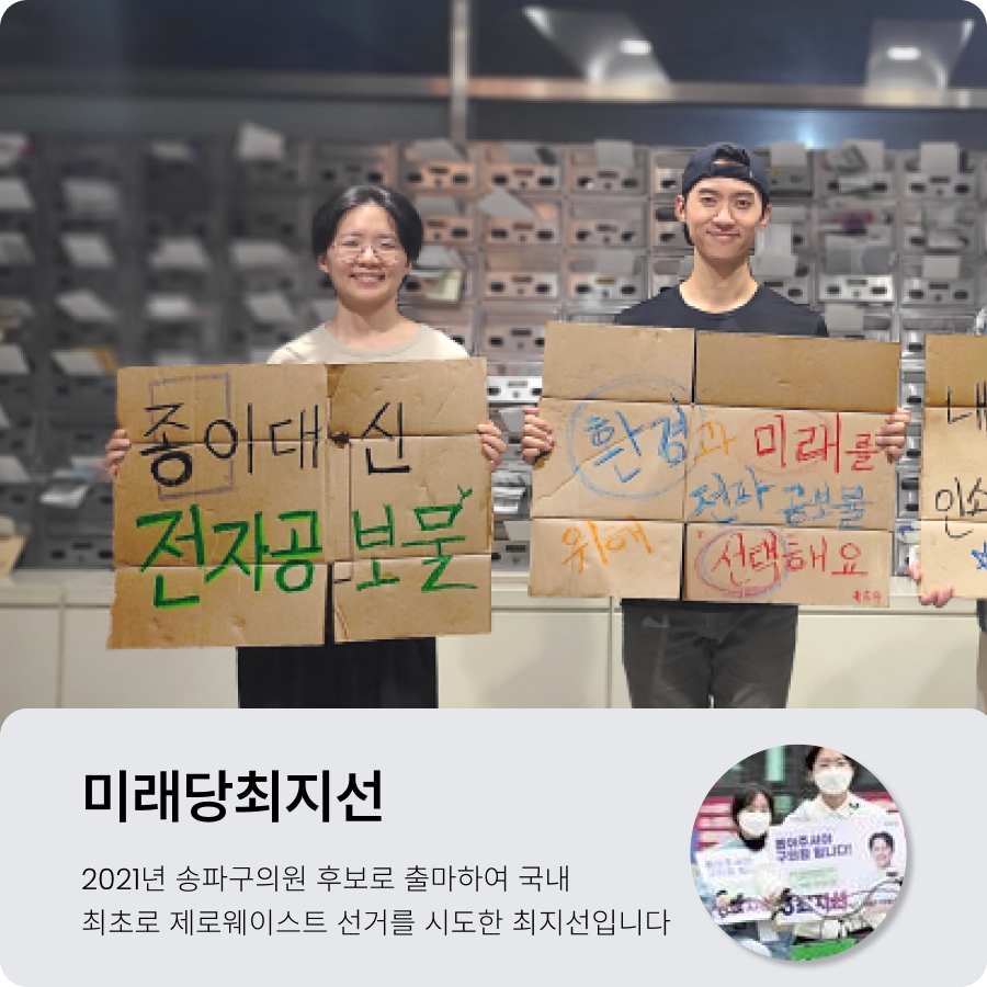 대통령 선거 등 큰 선거가 치러질 때마다 후보자의 정보를 담은 선거공보물이 만들어집니다. 하지만 이 공보물은 모두 종이로만 만들어지는데요. 막대한 세금이 사용되는 공보물은 그대로 폐기되기 일쑤입니다. 종이 대신 디지털로 공보물을 받아 세금도 아끼고, 환경도 보호하고 싶다면 미래당 최지선 대표의 캠페인에 참여하세요!